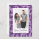 Envoyez des voeux de vacances à vos amis et à votre famille avec ces cartes photo de Noël modernes. Le design comprend votre photo de famille verticale préférée encadrée en blanc avec un arrière - plan de verre aquarellé dépoli dans les tons clairs et violet foncé. "Joyeux Noël" s'affiche ci-dessous dans un script de brosse violet foncé, écrit à la main. Personnalisez le revers de la carte avec deux photos supplémentaires encadrées en blanc contre un arrière - plan violet foncé solide. Les cartes de Noël festives et uniques vous impressionneront tous sur votre liste de cartes de Noël en cette période de fêtes.