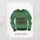 Envoyez vos salutations de vacances avec une touche d'humour et de chaleur grâce à notre carte de Noël Verte Chaleureuse Voeux moches Sweater. Cette carte à plat présente un pull vert amusant et festif orné de charmants pins. Au centre du pull, l'expression "Chaleureux Souhaits" est magnifiquement écrite dans une riche couleur bordeaux, ajoutant un message sincère à votre joie de vacances. Sous le pull, il y a une ligne personnalisable où vous pouvez ajouter votre nom de famille, ce qui en fait un accueil personnalisé et unique pour les amis et les proches. Parfait pour ceux qui aiment l’aspect fantaisiste et ludique de la saison des Fêtes, cette carte apportera sûrement un sourire à tous. Commandez dès aujourd'hui votre carte de Noël personnalisée Green Wicks Ugly Sweater et diffusez un peu de joie ce Noël!