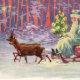Joyeux Noël de Vienna Woods ! Le petit traîneau de père Noël est tiré dans une forêt enneigée par deux rennes délicats. La scène est agitée avec des lumières du petit arbre de Noël qui voyage. Corail, lavande et couleurs aqua dans un motif abstrait créent un arrière - plan théâtral merveilleux. Cette ancienne illustration européenne a traversé le temps avec grâce pour décorer notre correspondance et nos cadeaux de Noël du XXIe siècle. Les couleurs tendance et l'image unique sont parfaites pour vos événements de vacances. La carte postale unique aux couleurs tendance a un design de coordination à l'envers.