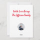 Paisible nuit enneigée dans le village de Noël avec beau sapin de Noël au milieu de petites maisons avec pins, oiseaux, lapin et écureuil. Dans ce dessin enchanteur du village de Noël, un paysage enneigé serein se déroule sous une couverture blanche scintillante. Le charmant village, niché au milieu des collines enneigées et des pins, propose des cottages pittoresques avec de la fumée sortant de leur cheminée, dégageant une atmosphère chaleureuse et confortable. Au coeur du village se dresse un joli sapin de Noël dans la neige, orné d'ornements vibrants et surmonté d'une étoile brillante. A proximité, un mignon lapin et un amical écureuil observent curieusement le spectacle. Le paysage du village d'hiver est plein de tranquillité et de joie, capturant l'essence de la saison des vacances. Les flocons de neige dansent dans l'air, créant la magie de l'hiver et la chaleur des fêtes de fin d'année dans une atmosphère de conte. Personnalisez la carte avec vos salutations et votre photo.