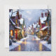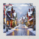 Une jolie carte de Noël illustrant un village lunatique enneigé et festif avec des toits recouverts de neige, une rue pavée et des vibes démodées. Au verso, vous pouvez ajouter votre propre message de vacances personnalisé et des photos.