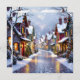 Une jolie carte de Noël illustrant un village lunatique enneigé et festif avec des toits recouverts de neige, une rue pavée et des vibes démodées. Au verso, vous pouvez ajouter votre propre message de vacances personnalisé et votre salutation.