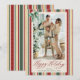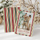 Carte photo de vacances personnalisé avec des rayures rouge, vert et or d'inspiration vintage avec un script de calligraphie élégant pour un design de Noël intemporel. *Utilisez l'outil de recadrage dans l'éditeur de design pour ajuster le placement de la photo.