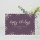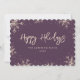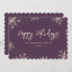 Carte Violet Happy Holidays avec des flocons de neige étincelants. Personnalisez facilement cette carte de vacances minimaliste mais élégante avec votre texte.