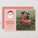 Cette carte photo de Noël présente un visage de Père Noël joyeux sur un arrière - plan rose. Il dit "Souhaitez-vous une saison de vacances joyeuse et brillante" avec un endroit pour ajouter votre photo préférée. Vous pouvez personnaliser avec votre nom et l'année en bas. Sur le dos se trouve un autre motif de coordination en diagonale rose et rouge.
