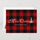 Vœu de Joyeux Noël sur carreaux de bison rouge et noir avec arbre de Noël blanc et cloches