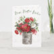 Rustique Saison IV | Un contenant argenté est rempli de magnifiques fleurs de fêtes rouges et blanches, de verdure et de baies. Le sentiment "Vœux de chaleureux hiver" flotte au-dessus du bouquet. | 57372HR