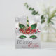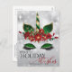 Carte de vœux de fêtes | Meilleurs vœux de fêtes dans une police contemporaine et une calligraphie moderne. Un arrière-plan bokeh argenté scintillant met en valeur cette belle tête de licorne verte et dorée décorée. Elle a de beaux yeux verts scintillants avec de longs cils et une corne et des oreilles rayées dorées et vertes brillantes. - elle porte un diadème floral de poinsettias rouges, de houx et de lys rouges - Personnalisez le texte en bas ou vous pouvez le supprimer - Il s'agit d'un design de vacances non confessionnel adapté à une utilisation en famille ou au bureau. Tous les travaux artistiques originaux © par WhimsicalArtwork™. Cela fait partie d'une collection de fêtes coordonnée à assortir et à mélanger.