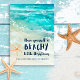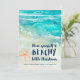 Qui n'aimerait pas avoir un peu d'air salé et du sable entre les orteils pendant les fêtes ? Envoyez à vos amis et à votre famille vos Vœux de mer avec cette carte à thème côtier qui présente des vagues océaniques turquoise tropicales à l'aquarelle, du sable, une étoile de mer et une légende « Passez un Noël de plage » en bleu marine. La ligne de texte en bas peut être personnalisée. Œuvre de KL Stock