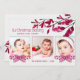 Notre Bénédiction de Noël, une belle carte de vœux de vacances sur le thème botanique avec trois emplacements pour vos photos et dans des nuances de magenta profond à rose. Parfait pour mettre en valeur une petite fille qui vient de rejoindre la famille.