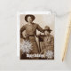 Photo ancienne de deux femmes de l'ouest sauvage. L'une est assise et l'autre debout, elles portent toutes les deux des jupes à franges et des chapeaux. L'une a un pistolet dans un étui à sa taille. Trois flocons de neige blancs et un message de Noël personnalisable.