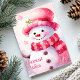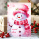 Envoyez vos vœux de fin d'année chaleureux avec cette charmante carte représentant un joyeux bonhomme de neige vêtu d'un chapeau et d'une écharpe roses, sur fond de neige. Le message "Vœux les plus chaleureux" ajoute une touche de sincérité, faisant de cette carte l'idéal pour répandre la joie autour de vous, entre amis et en famille, pendant cette période des fêtes.