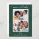 Cette carte de voeux doux et chaud présente une typographie de script blanc moderne et un collage de trois photos chic sur un arrière - plan vert foncé.