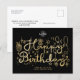 Customisez cette carte postale d'anniversaire Business Happy Birthday originale originale avec du texte en or et des éléments de décoration de fête d'anniversaire dessinés à la main sur un arrière - plan noir. Veuillez noter que l'or dans ce design est une impression de couleur beige jaune plat et n'est pas une véritable feuille métallique. Changez l'image "votre logo ici" avec votre logo. Répétez pour le côté arrière. N’oubliez pas de customiser le côté avant et le côté arrière du texte, il inclut toutes les informations de contact de votre entreprise. De cette façon, cette carte postale fonctionne aussi comme une carte de profil de complany d'affaires amusante. La couleur noire de l'arrière - plan est personnalisable et peut être changée en n'importe quelle autre couleur pour correspondre à votre schéma de couleurs d'entreprise. Carte postale Joyeuse d'anniversaire pour les employés, les partenaires d'affaires et les clients. Ce produit est conçu comme un modèle pour votre personnalisation en ligne facile.