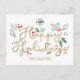 Customisez cette carte postale originale et originale signée à la main Business Happy Holidays avec du texte de parties scintillant en faux or et des éléments de décoration de noël dessinés à la main sur un arrière - plan blanc propre. Veuillez noter que l'or et la parties scintillant dans ce design sont des imprimés couleur jaune plat et ne sont pas une feuille métallique ou une parties scintillant réelle. Changez l'image "votre logo ici" avec votre logo et votre logo apparaîtra sur les deux côtés. N’oubliez pas de customiser le côté avant et le côté arrière du texte, il inclut toutes les informations de contact de votre entreprise. La couleur blanche de l'arrière - plan est personnalisable et peut être changée en n'importe quelle autre couleur pour correspondre à votre schéma de couleurs d'entreprise. Carte postale professionnelle idéale pour les entreprises ou les groupes de bureau de noël avec une atmosphère chaleureuse pour les employés, les partenaires d'affaires et les clients. Ce produit est conçu comme un modèle pour votre personnalisation en ligne facile.