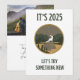 Ce design présente un alpiniste en plein air avec des montagnes en arrière - plan. Avec l’expression "IT’S 2025, ESSAYONS QUELQUE CHOSE DE NOUVEAU", il fait un joli cadeau pour les hommes ou les femmes, pour un ami ou même pour toute la famille. C’est une façon idéale d’encourager quelqu’un à essayer un nouveau passe-temps ou une nouvelle aventure cette nouvelle année 2025. Si vous planifiez une grande aventure en 2025, cette carte peut être la meilleure façon de la montrer. Vous pouvez personnaliser la conception en remplaçant le phot et/ou le texte.