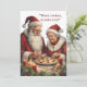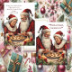 A charming Mrs. Claus baking with Santa Claus Christmas cookies and spreading love. The illustration has the couple wearing winter red dress and Christmas woolen hats, getting ready for a Christmas party. In the front has a quote "Warm Cookies Warmer Hugs" and at the reverse are greetings that can be personalized with your own words.