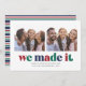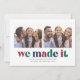 Celebrate making it through another crazy year with this two photo Christmas card. It features the words "we made it" in multicolored letters, space for a short message, as well as your name and the year. The back has a color coordinating stripe pattern.