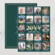 What a year to remember! Send stylish joyful greetings and share 18 favorite pictures with a 5x7 photo collage holiday card. Create your own unique year in review card for family and friends to enjoy. All pictures and wording on this template are simple to personalize. The colors and font styles can be customized with the Zazzle Design Editor tool. The green, gold and white design features trendy casual handwritten script, elegant classic typography name and year, and a modern photo grid with 18 square pictures and typewriter font captions. The message on back is easy to personalize or delete. Family and friends will love displaying this stylish customized card. Please note that the gold is printed color, not metallic foil. Happy Holidays!
