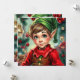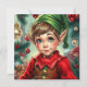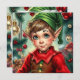 A sweet personalized Christmas card with a cute elf cartoon and a festive background. On the back you can add your own special holiday greeting and names.