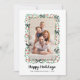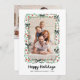 This simple and stylish family or couples Christmas card features your favorite photo, surrounded by a whimsical hand-drawn frame with red and green foliage and holly berries, and trendy black bows. Elegant modern script says "Happy Holidays." There is room for a second photo on the back, along with a personal message to family and friends.