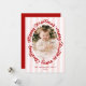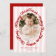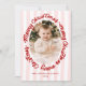 Share festive holiday greetings with this whimsical Christmas photo card featuring your vertical photo framed in an oval surrounded by “Merry Christmas” in a playful handwritten red script. The background showcases soft watercolor pink stripes for a cheerful, modern touch. Personalize with your family name and the year below in matching red lettering. The back includes an additional square photo with space beneath for your custom message, creating a sweet and stylish keepsake for the season.
