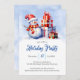 Invités Invitations à un rassemblement festif avec cette charmante invitation de fête de vacances avec un bonhomme de neige gai, des cadeaux colorés emballés, et la chute de neige. Parfait pour les fêtes de Noël ou d'hiver.
