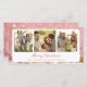 This Christmas card design features a whimsical winter scene set against a soft pink background. Three charming yellow houses are nestled together, each adorned with snow and pink windows, evoking a cozy and festive atmosphere. In the foreground, a cheerful snowman wearing a pink hat and scarf stands out, adding a playful touch. Snow-covered trees surround the scene, and delicate snowflakes fall gently, enhancing the magical holiday feel. The front of the card includes three dedicated spaces for uploading personal family photos, making it perfect for sharing personalized holiday greetings. The elegant inscription "Merry Christmas" adds a festive final touch.