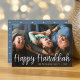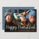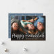 Élégant et festif Hanoukka carte photo caractéristiques "Happy Hanoukka" dans le style manuscrit de la typographie de script blanc décontracté. Personnalisez avec votre nom de famille et l'année en bas.