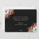 Black botanical New Year card featuring falling snow and a watercolor painting of poinsettia, holly and red berries.