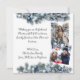 Personalized two photo Christmas card. A sweet ai art watercolor illustration of a little fox sitting in the snow surrounded by an enchanted magical forest wonderland full of snow, pine trees and twinkling Christmas lights. On the back you can add your own custom holiday greeting and upload two family photos.