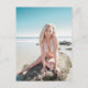 Cartes Pour Fêtes Annuelles Woman Posing On Beach Rock In White Bikini