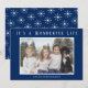 Envoyez des vœux de Noël avec ces cartes de vœux minimalistes. Un design moderne et simple avec votre photo de famille et le message "C'est une vie merveilleuse" en blanc sur fond bleu marine. Le dos présente des flocons de neige blancs sur fond bleu marine. Vous pouvez modifier la couleur du texte et les couleurs de fond en cliquant sur le bouton "personnaliser".