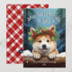 Cette adorable carte de voeux de vacances présente une jolie illustration de chiot akita portant une couronne fleurie festive de saints, de pins et de baies, avec des flocons de neige tombant doucement contre un arrière - plan forestier d'hiver. La petite Akita regarde le rond enneigé pour dire bonjour ! Le texte ludique "Merriest Holiday Wives" ajoute une chaleureuse salutation saisonnière, et peut être customisé comme vous voulez. Le revers est décoré d'un chèque en plaid rouge classique, ajoutant une touche traditionnelle à l'ensemble. Cette adorable carte est parfaite pour envoyer des encouragements de vacances à la famille et aux amis, et le nom et la date personnalisables en font un gardien personnalisé.