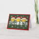 Carte de voeux de Noël entièrement personnalisable et humoristique : Trois heureux avec chapeaux de Père Noël, assis au-dessus du message "Joyeux X-Mas". Le tout sur un arrière - plan vert profond avec des étoiles brillantes et dorées. Obtenez aussi les timbres-poste correspondants!