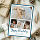 Cette belle carte de collage photo Noël avec 4 photos, Yappy Howlidays dans une police de script de brosse moderne, un sentiment personnalisable, vos noms et l'année serait parfait pour envoyer à vos amis et votre famille. Tout le monde aimera avoir de nouvelles photos de vous et de votre(vos) chien(s). Les polices sont modernes et propres en turquoise. Pour faire de cette carte votre propre, sélectionnez Personnalisez ce modèle, téléchargez vos photos préférées et tapez votre sentiment, vos noms et l'année. C'est super facile ! En quelques secondes, vous verrez vos cartes de fin de année photo uniques et fabuleux.