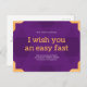 Cette élégante carte Yom Kippour est bordée de violet vif et de jaune chaud, créant un contraste saisissant. Il incarne l'esprit d'introspection et de pardon, essentiel à Yom Kippour. Un motif subtil des Etoiles de David renforce encore l'attrait esthétique. Les mots "Je vous souhaite un rapide facile" sont inscrits dans une typographie de bon goût, ce qui fait de cette carte un moyen de transport parfait pour vos souhaits sincères.L'unicité de cette carte réside dans sa caractéristique personnalisable. Ajoutez votre propre message ou nom dans une police complémentaire, vous permettant de vous connecter avec vos proches à un niveau plus intime pendant ce temps réfléchissant. Cette carte réfléchie est un moyen idéal pour transmettre vos souhaits sincères sur Yom Kippour.
