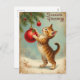 Share a moment of holiday magic with this sweet postcard featuring a playful orange tabby kitten reaching up to touch a bright red ornament hanging from a snowy pine branch. The soft winter landscape and vintage-style edges evoke a sense of nostalgia, while the kitten’s curious pose adds warmth and charm. The front reads “Season’s Greetings” in a decorative font, and the reverse includes a space for your own verse or message — perfect for personalizing with love, laughter, or a thoughtful note. Part of the Paws Charming Paws, Wings, and Winter Things collection, celebrating the joy animals bring to the season. A portion of proceeds supports animal charities, making every card a gift that gives back.