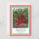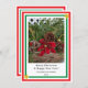 Festive wood Yule log with evergreen pine needle boughs, pine cones and red bow. Leave image on front, or Upload your own. Red and green Green geometric pattern with gold stars elements against white background. Insert Family Last Name and Year. Holiday greeting and red white candy canes and festive Christmas tree on backside. Original Photography and Artwork, Verse by TamiraZDesigns.