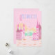Ce design est une illustration charmante, dans les tons pastel, inspirée de Zurich, Suisse. La composition est composée d'un arrière - plan rose pastel doux, évoquant la sérénité et la pittoresque beauté des Alpes suisses, illustrées de silhouettes de montagne vert pastel et orange. Des éléments architecturaux de premier plan, comme les tours emblématiques de l'église de Zurich, sont stylisés dans les tons rose et marron pastel, donnant à l'illustration un aspect fantaisiste.