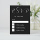 Des cartes RSVP minimalistes en noir et blanc pour vos invités mariages. Ces cartes doivent être personnalisées avec vos propres détails au moment de la commande