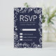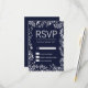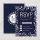 Elégant, moderne, chic blanc et tendance marine bleu floral dessiné à la main motif, Cartes RSVP. Ce design classique et sophistiqué est parfait pour tout événement élégant et tendance, y compris les mariages et les occasions quotidiennes.Personnalisez avec votre propre message sur le devant ainsi qu'une initiale de monogramme customisée sur le dos. Toute la conception d'impression photo.
