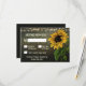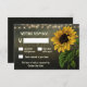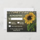 Cartes RSVP de Mariage de Tournesol Rustique - dispose d'un arrière - plan rustique avec des lampes à cordes et un tournesol. Le texte présente une sculpture rustique comme une police pour les noms et la célébration mariage.