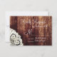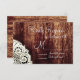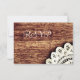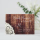 Le côté arrière dit RSVP contre l'arrière - plan en bois en détresse avec la dentelle dans un autre coin. Ils sont parfaits pour les mariages campagnards et les mariages de grange rustique. Ces invitations de mariage correspondent :