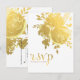 Cartes RSVP de mariage moderne élégant avec roses dorées et feuille d'aluminium. Articles assortis disponibles.