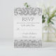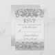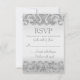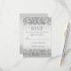 Cette conception de carte RSVP moderne personnalisée comporte des accents de parties scintillant faux argent avec un arrière - plan argent. Parfait pour les mariages élégants et modernes. Modifiez le style de police, déplacez du texte, etc. en cliquant sur le bouton "Customiser".