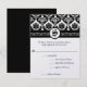 Cartes de réponse RSVP avec choix de menu à monogramme floral damassé noir et blanc. Parfait pour les thèmes de mariage médiéval ou renaissance ou mariage victorien,