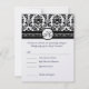 Cartes de réponse avec monogramme en damas noir et choix de menu