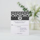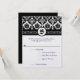 Cartes de réponse RSVP avec choix de menu à monogramme floral en damassé noir et blanc. Parfait pour les thèmes de mariage médiéval ou renaissance ou mariage victorien,