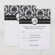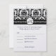 Cartes de réponse de monogramme en damas noir avec choix de menu